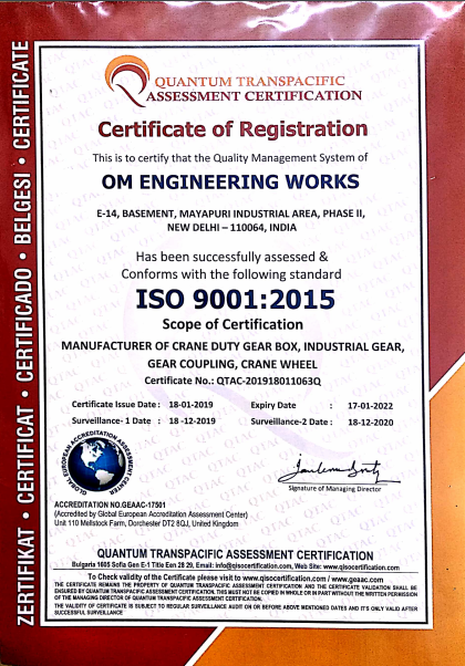 Om engineering is a leading ISO Certified Manufacturer, supplier, trader, service provider and importer of an extensive range of the world-class heavy duty machines, gearboxes, crane wheels, crane hook, thruster, and helical gear. Besides helping clients to get the customized products as per their needs and requirements, we also offer crane maintenance services to ensure the flawless operations of our products under all circumstances. We manufacture both standard and customized products for our clients to help them run their business.