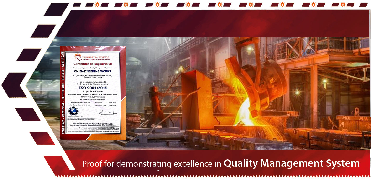 Om Engineering Works Led by Mr. Omvir Singh, the company produces economical and efficient Gear Boxes & Crane Parts through backward and forward integration. From the widest flat products to a whole range of long products, Om Engineering Works today sports a product portfolio that caters to markets across the Gears value chain. An ingenious spirit and the ability to discern future trends have been the driving force behind the company's remarkable growth story.
